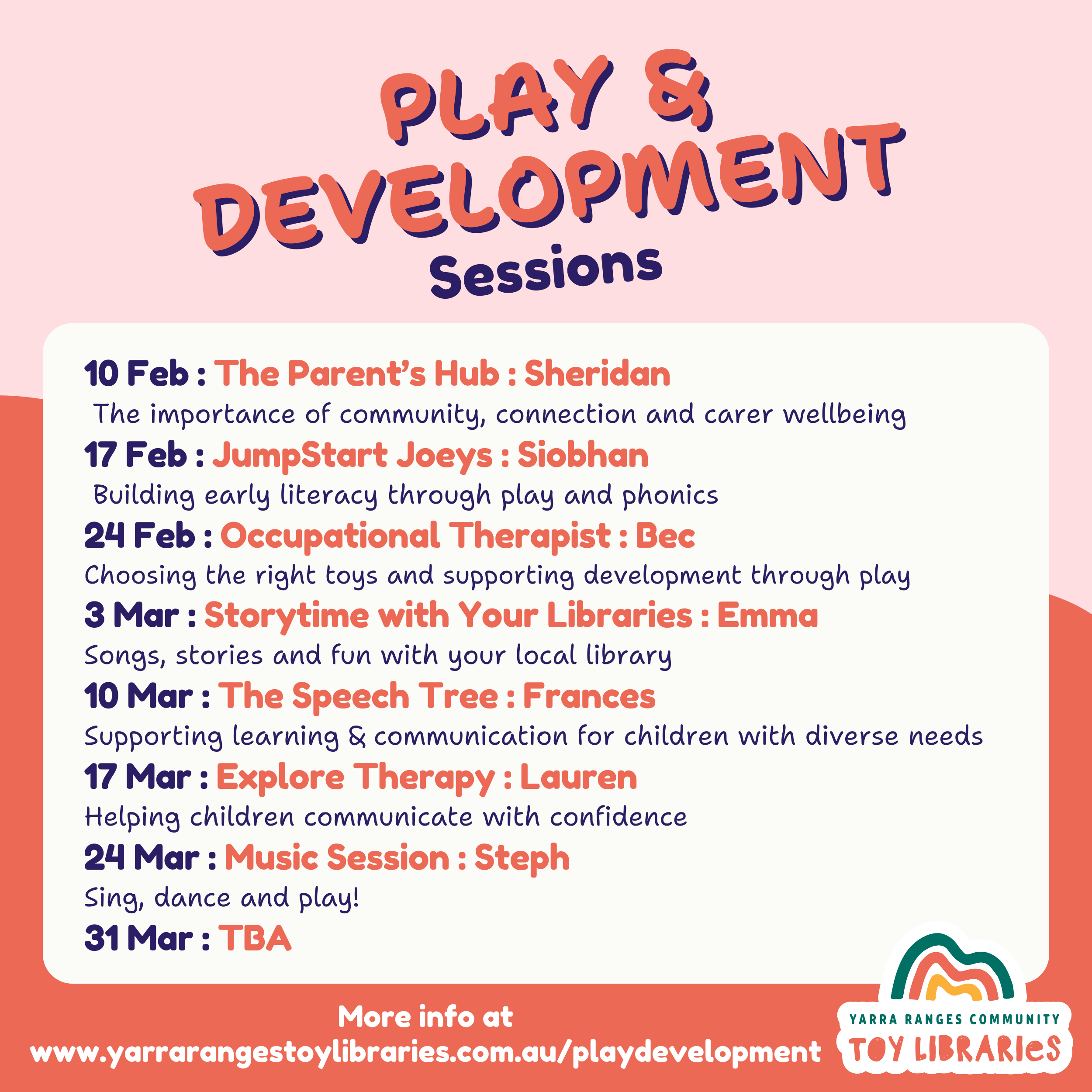 The sessions are relaxed, welcoming and designed to support learning through play while also giving families the chance to connect with others in the community. We’re really excited to be offering these special sessions and can’t wait to share them with you.